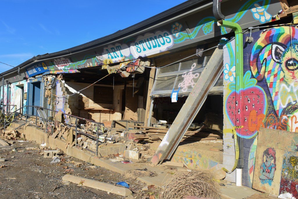Details from Asheville’s River Arts District— a hub for art galleries, studios of all mediums, secondhand, vintage, and handmade goods. These images were taken 2 months after Helene hit. Pottery, glassblowing, paint studios, and everything else was destroyed under 25 feet of rushing water and then several feet of toxic mud after the waters receded.